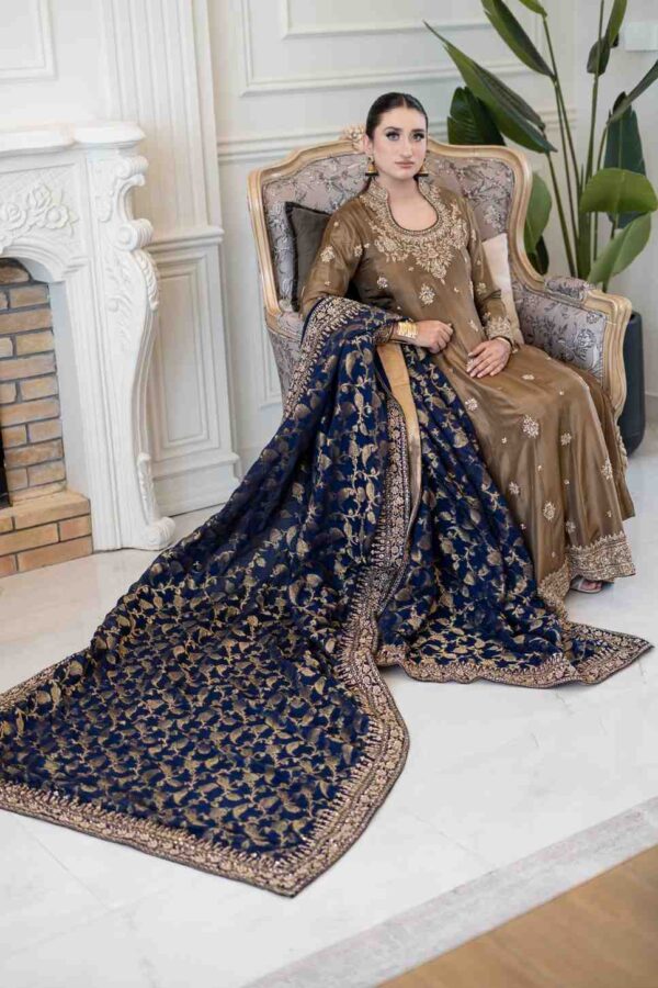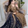 Embrace the festive spirit with our enchanting mehndi green angrakha frock, a perfect blend of tradition and style. The frock features a flattering silhouette with intricate detailing, designed to make you feel elegant and comfortable. Paired with a rich navy shawl, this ensemble offers a striking contrast, adding a touch of sophistication. Ideal for celebrations, this outfit ensures you stand out with grace and charm.